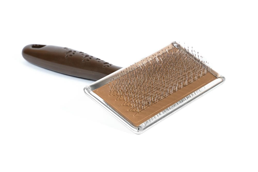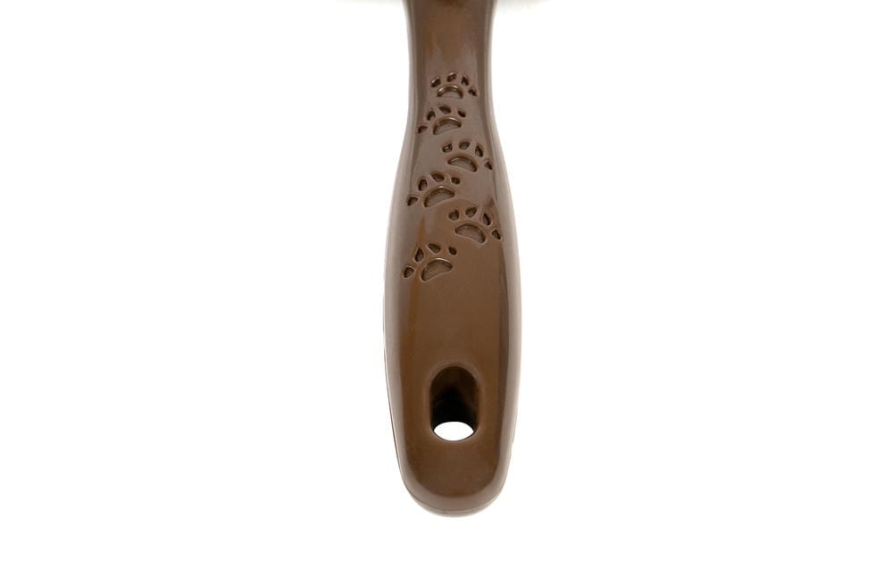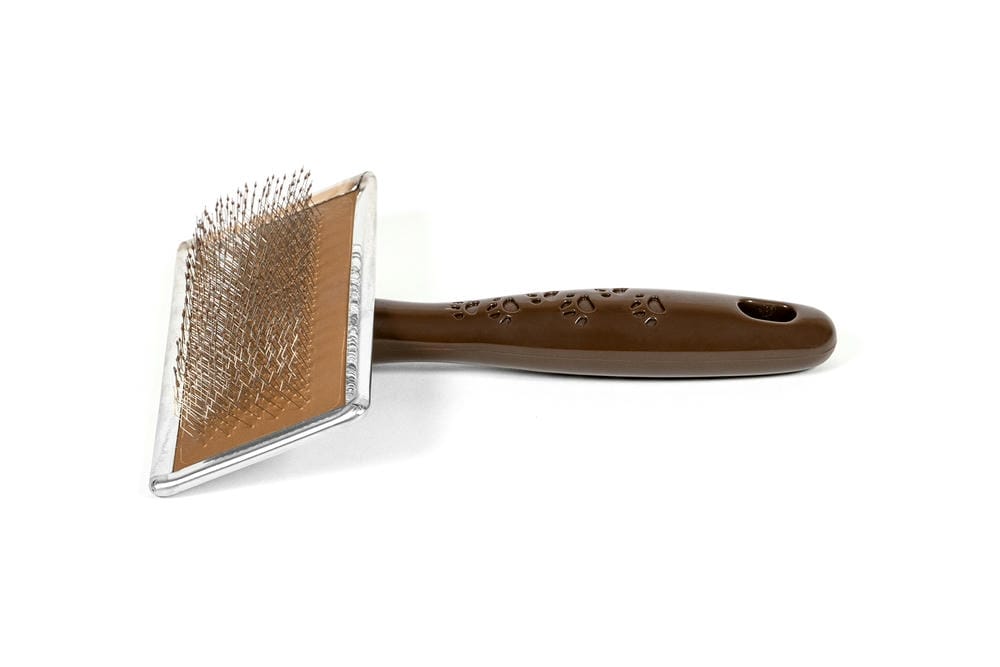 The Ball Pin Slicker Brush is designed for gentle yet effective grooming. Its fine wire bristles with rounded tips help remove tangles, dirt, and loose hair without irritating your pet’s skin.