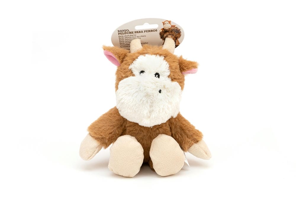Bring home Banjo, the Plush Cow Dog Toy, and let your pup enjoy the company of this adorable farmyard friend. Banjo is crafted from ultra-soft plush fabric, ideal for dogs that prefer cuddly, non-aggressive toys. With floppy limbs and a friendly face, Banjo makes the perfect daytime pal or bedtime buddy.