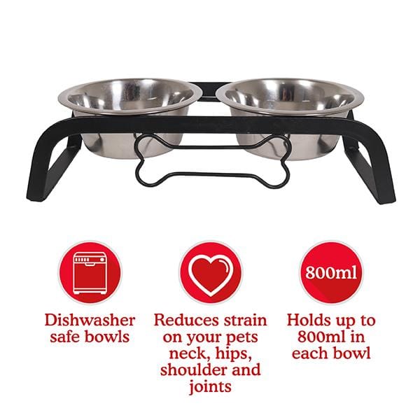 Includes two dishwasher safe stainless steel bowls