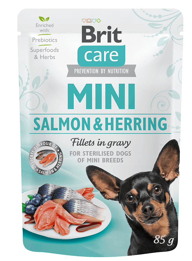 77 % meat and animal derivatives in fillets, 8 % fish and fish derivatives (from this 4 % salmon, 4 % herring), 2.7 % pea flour, 1.5 % dried blueberries, 0.9 % lignocellulose, 0.4 % dried cloves, 0.4 % dried citrus, 0.4 % dried rosemary, 0.4 % dried curcuma, 0.2 % calcium carbonate.