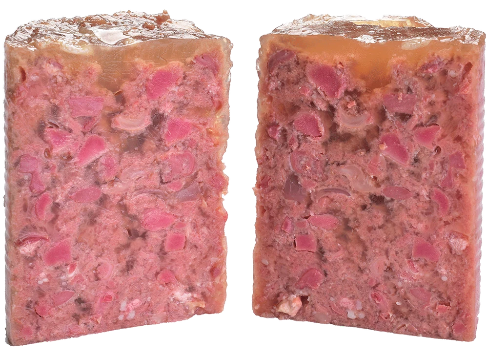 - Real chunks of meat with whole pieces of offal in pâté.
