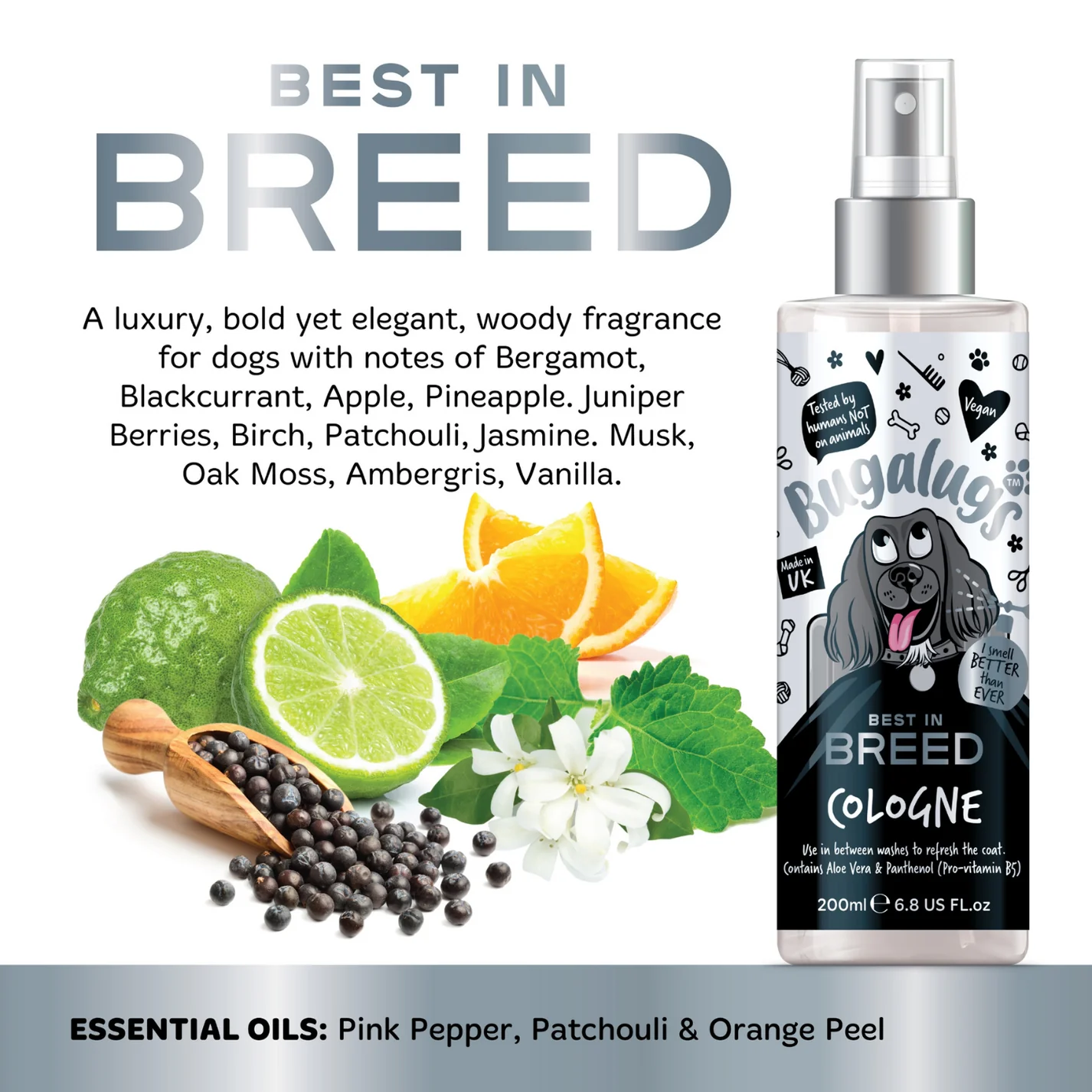 At Bugalugs we believe in giving our furry companions the best and ‘Best in Breed’ is the crème de la crème of fragrances. As part of our premium collection, ‘Best in Breed’ is scented with a popular designer fragrance. This cologne is perfect for refreshing the coat in-between washes and will aid in eliminating odours quickly, leaving your pet smelling irresistible for hours after use.