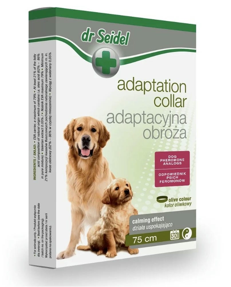 Dr. Seidel’s adaptive collar is a modern, multi-component preparation from a series of behavioral aids. It has a calming and soothing effect on dogs . It contains a composition of natural substances – equivalents of dog pheromones . This composition corresponds to the mixture known since 1996, disclosed in the European patent EP0724832. The use of the collar during behavioral therapy significantly supports its process. It provides the dog with a sense of security, promotes learning and quick adaptation to new challenges.