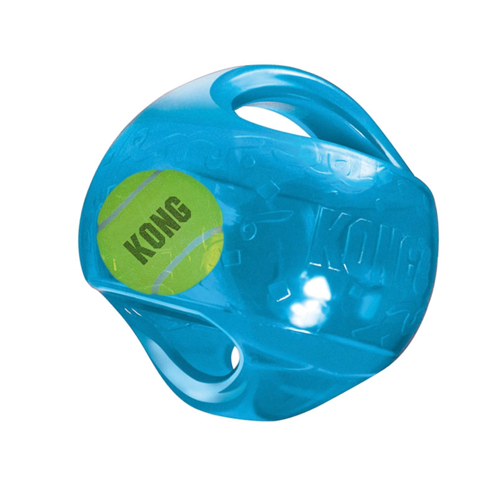 The KONG Jumbler Ball features a sturdy outer ball with a squeaky surface and a tennis ball sealed inside for unpredictable play. It’s built for tugging, shaking and active outdoor fun, encouraging dogs to retrieve and interact through multiple textures and sounds.