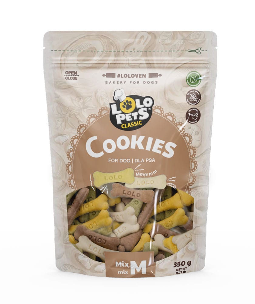 The appropriate hardness of cookies plays a significant role in the care of the healthy state of the gums and teeth of four-legged pets. While biting cookies, the bacterial plate is mechanically removed, thereby reducing the formation of tartar and refreshing the breath. Incorrect oral hygiene of dogs can lead to many diseases including liver, kidney or even heart disease. Dental diseases are very painful and make animals feel bad, which can be reflected in their daily behavior. Tooth loss in dogs often means that you have to switch to a special diet based on softer foods, which often means that you can’t give your dog favorite foods. In addition to maintaining strong and healthy teeth, chewing cookies is fun for dogs and has a positive effect on their psyche and well-being. Lolo Pets Classic cookies are also ideal as a reward after correctly completing the task we set for our quadruped. Ideal during training. Nothing motivates you to continue to act correctly like a proper, tasty reward.