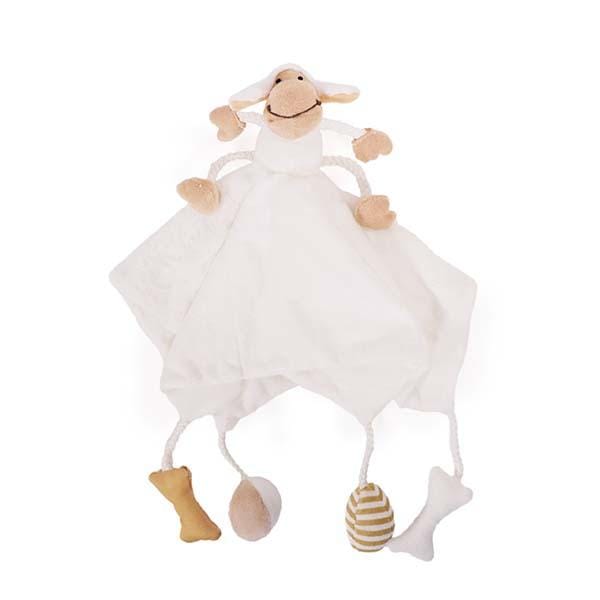 Multi activity blanket. Comfort blanket with hanging plush toys. Size: 32cm/13″