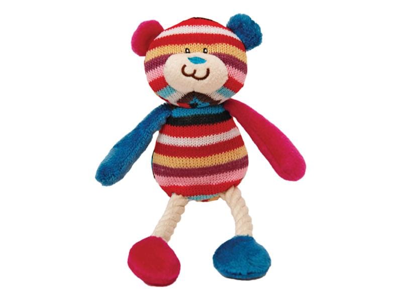 Mini plush and rope dog toy. Includes a squeaker inside. Perfect for play-time!